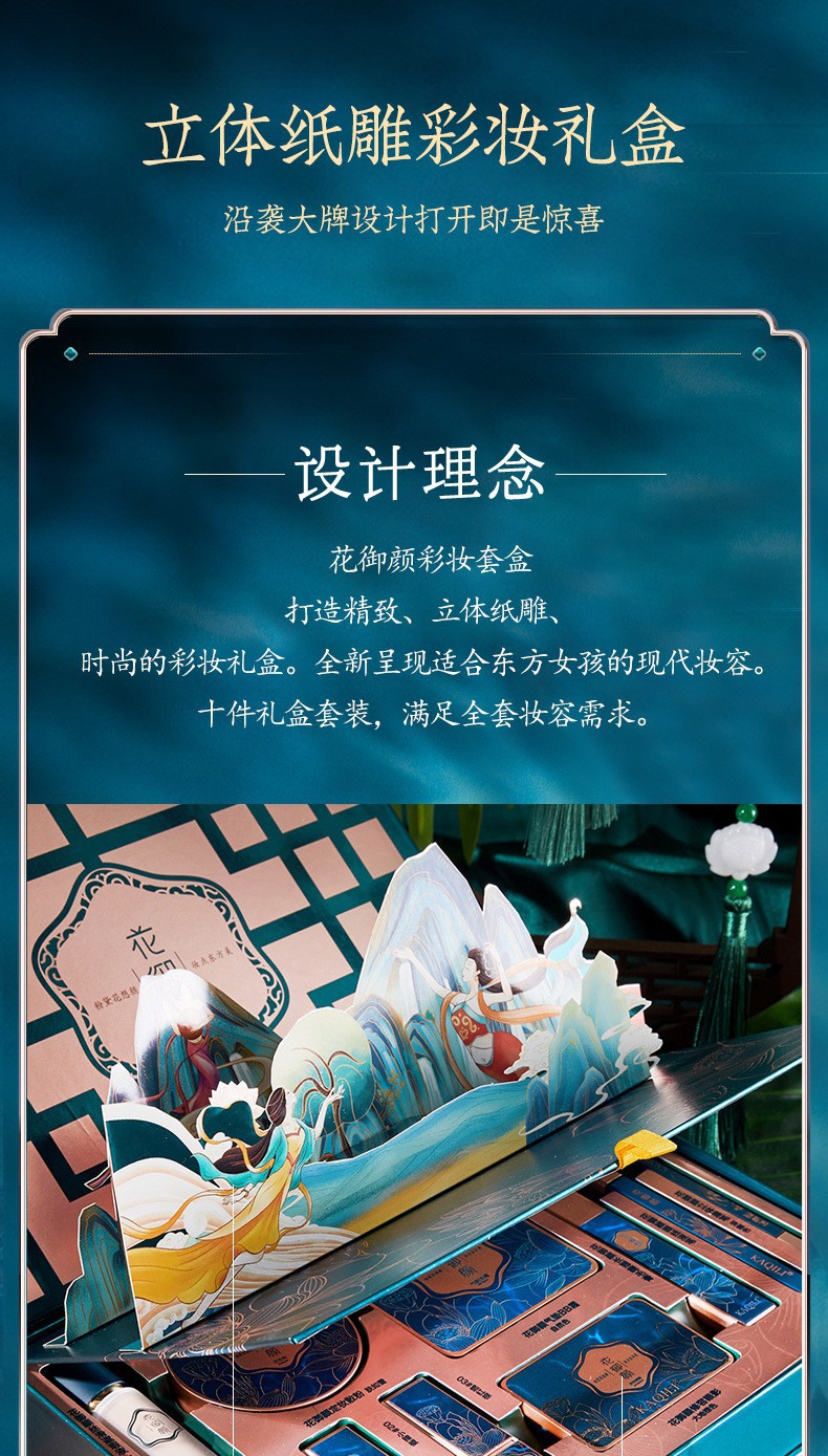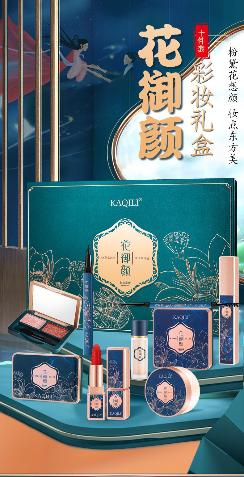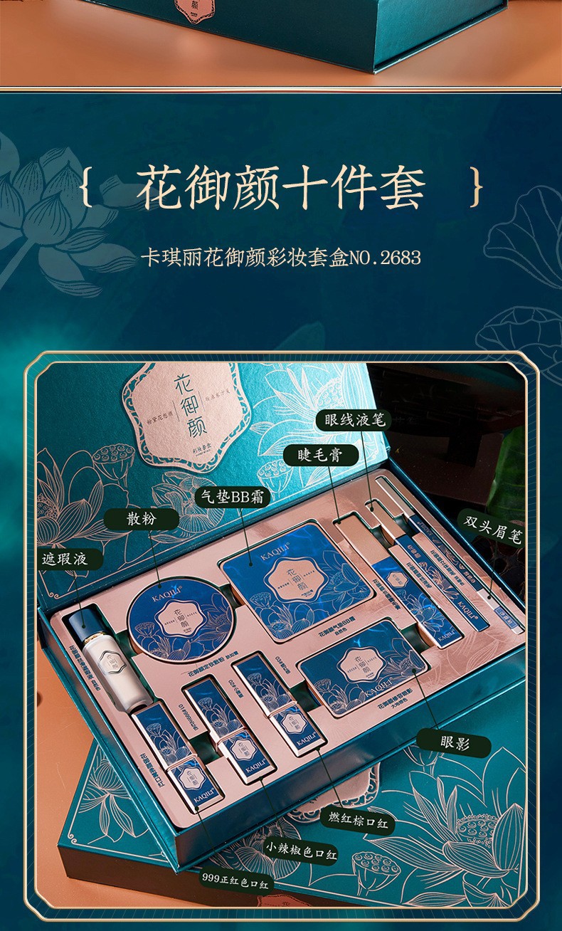 卡琪丽花御颜中国风国潮雕花彩妆套装情人节七夕化妆品十件套礼盒